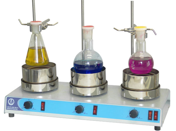 Отдельная разновидность лабораторного оборудования — одно и многоместные нагреватели стаканов, параллельно выполняющие функции перемешивания.