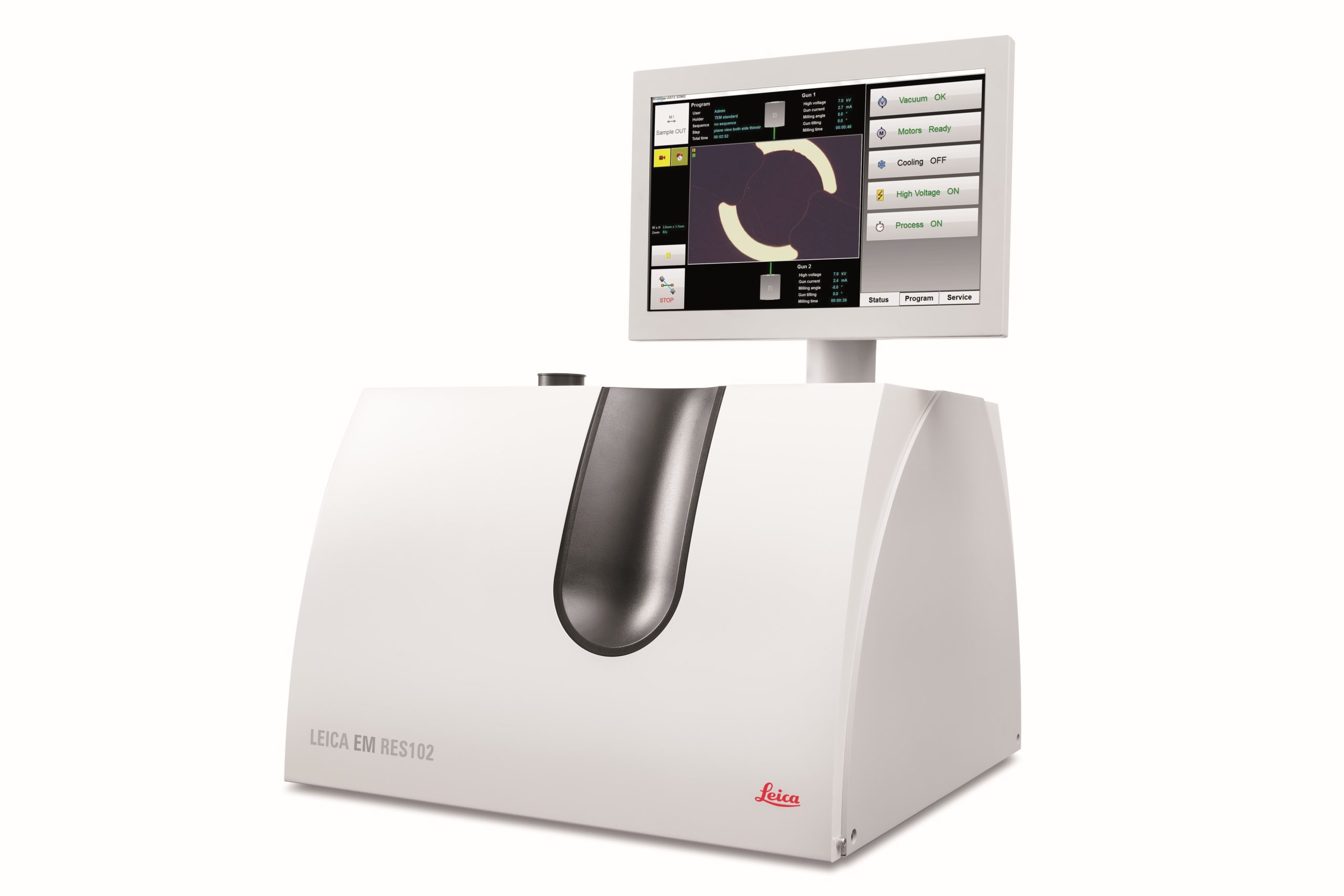 Leica EM RES102 – система ионного травления/полировки с изменяемым направлением ионных пучков. Приготовление образцов для ПЭМ и СЭМ и АСМ исследований. Leica EM RES102 позволяет изменять ориентацию ионных пучков с углом от 0° до 90° и их энергию. Образец отображается в течении всего времени процесса посредством встроенной CCD камеры. Опциональная LN2 система охлаждения позволяет осуществлять подготовку образцов без артефактов.