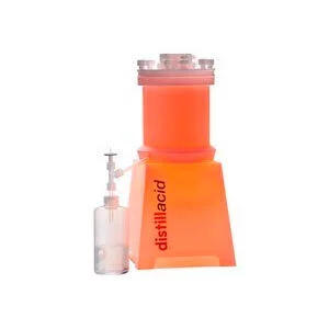 Установка изготовлена только из кислотоустойчивых полимеров. Дистиллят контактирует только с высокочистым фторопластом. Бесконтактный нагрев дистиллируемой жидкости осуществляется при помощи инфракрасной лампы.