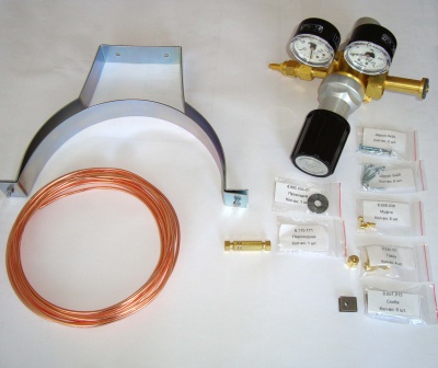 Комплект включает в себя двухступенчатый баллонный регулятор давления 5.882.003, медный трубопровод, а также комплектующие, необходимые для установки баллона и монтажа трубопровода до хроматографа. Полный перечень элементов, входящих в комплект, приводится ниже.