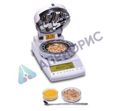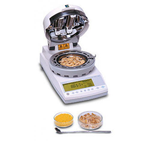 Особенностью данной модели является то, что измерительная ячейка анализатор выполнена в виде монолитного чувствительного элемента UniBloc из алюминиевого сплава, малочувствительного к колебаниям температуры и позволившего поднять на новый уровень стабильность при взвешивании. Функция Windows Direct обеспечивает самый простой способ передачи данных на компьютер и цифровой контроль измерений. Большая платформа (диаметр 130 мм) позволяет большое количество образца расположить тонким слоем, что делает измерения более точными и быстрыми. Анализатор может работать в нескольких режимах: режим автоматической остановки измерения (если за последние 30 секунд потеря влаги образца стало меньше указанного процентного содержания), режим по временной остановки измерения (процесс измерения останавливается по истечении указанного времени), режим стандартного высушивания, режим быстрого высушивания, режим медленного высушивания, режим пошагового высушивания, режим предварительного измерения. Анализатор влажности находится в процессе получения сертификата средств измерений РФ.