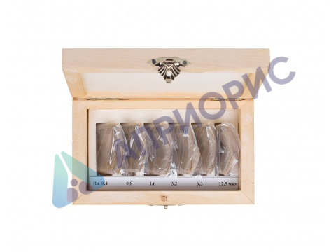 Ширина каждого образца составляет не менее 20 мм. Выпускаются по ГОСТ 9378-93. Комплектация набора: 6 пластин со средним арифметическим отклонением профиля (Ra) 3,2; 1,6; 0,8; 0,4; 0,2; 0,1 мкм. Форма образца: цилиндрическая вогнутая. Материал: сталь. Образцы поставляются в жестком пластиковом или деревянном кейсе.