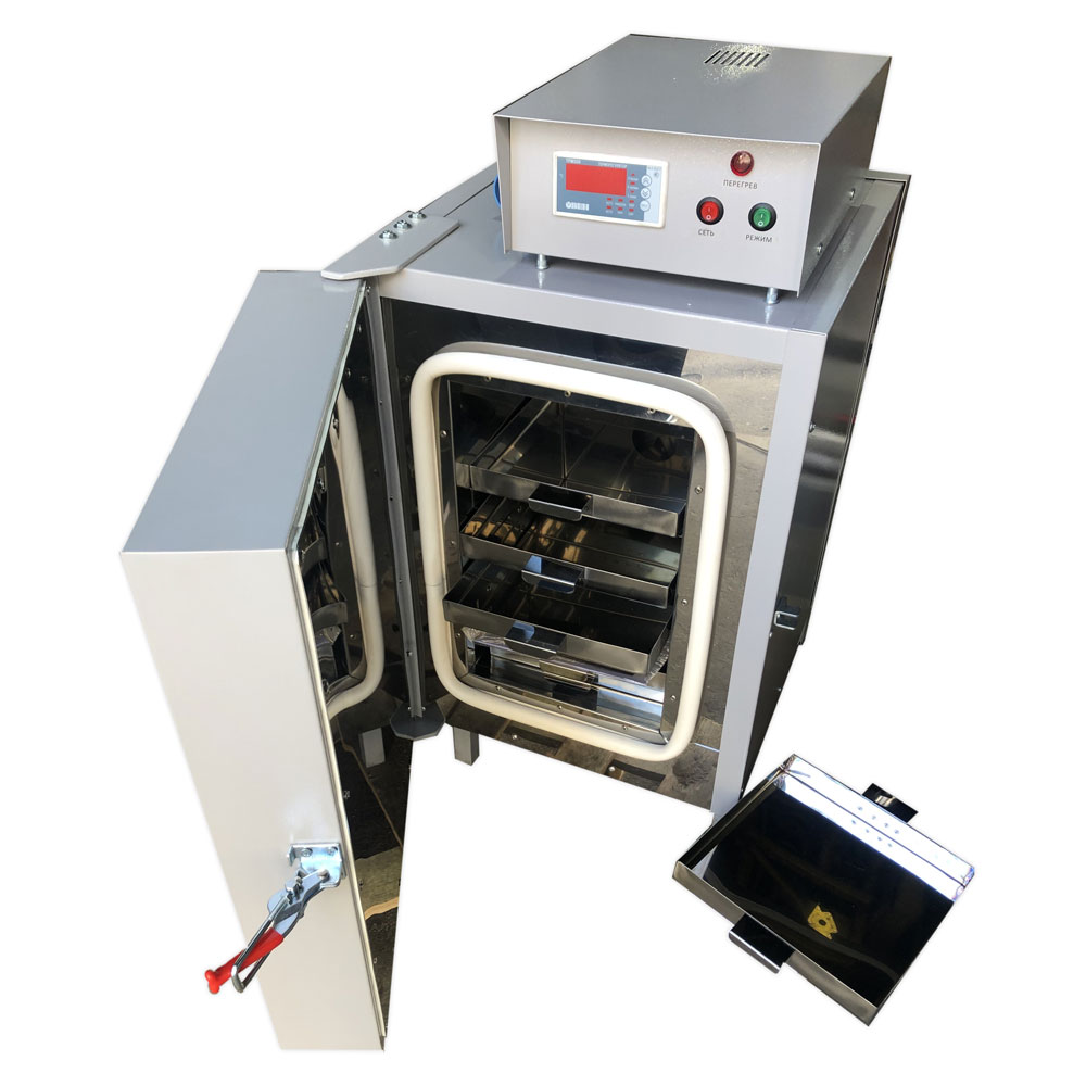 Для оперативной и точной настройки температуры в сушильной камере используется надежный микропроцессорный контроллер ТРМ500 (доп. опция: ТРМ10, Термодат 16Е6) с цифровой индикацией. При желании блок управления может монтироваться не на само оборудование, а на ближайшую стену.