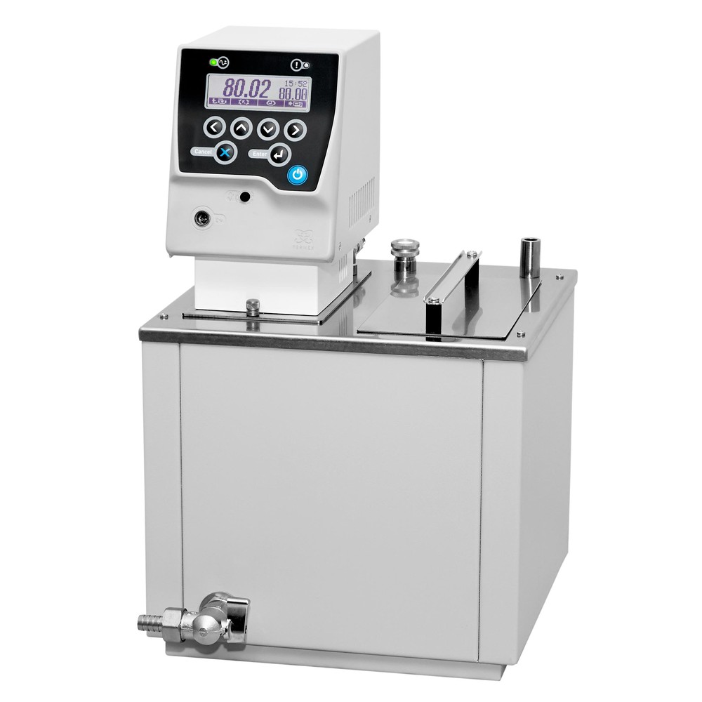 - Для работы при температурах ниже температуры окружающей среды термостат имеет встроенный теплообменник для подключения к водопроводу или проточному охладителю.