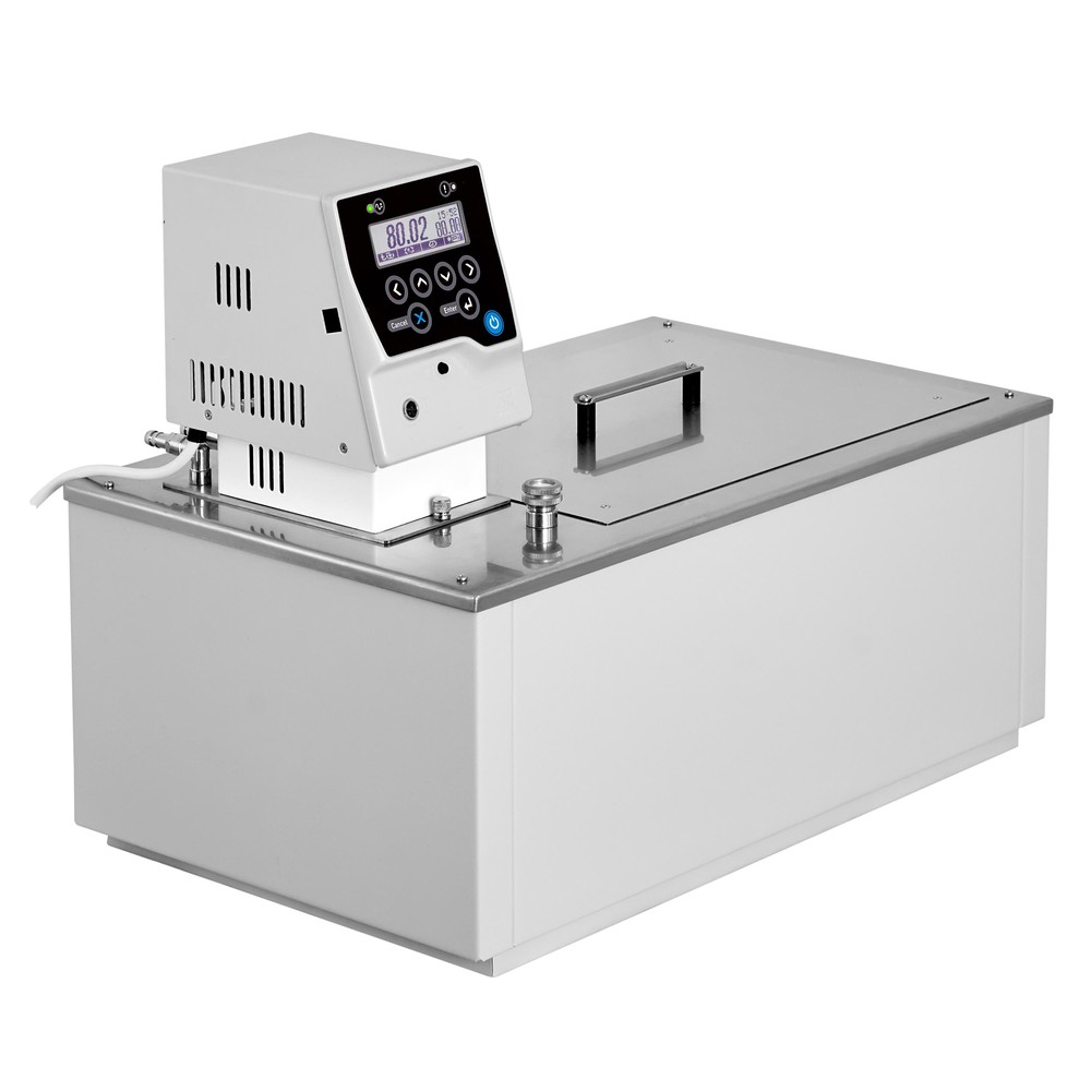 - Для работы при температурах ниже температуры окружающей среды термостат имеет встроенный теплообменник для подключения к водопроводу или проточному охладителю.