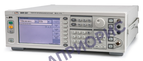 Диапазон частот генератора формируется из диапазона частот задающего генератора с последующим преобразованием и фильтрацией паразитных частотных составляющих. Источником опорной частоты для задающего генератора служит кварцевый генератор частотой 10 МГц с термокомпенсацией. Модификации АКИП-3207 и АКИП-3207/1 отличаются диапазоном формируемых частот: от 250 кГц до 4000 МГц и от 250 кГц до 3000 МГц соответственно.