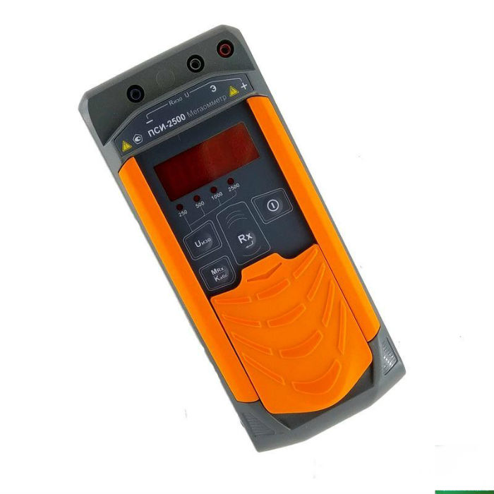 Мегаомметр ПСИ-2500 – лучшее предложение в своей ценовой категории среди мегаомметров с испытательным напряжением до 2500 В. Прибор предназначен для измерения сопротивления изоляции электрических цепей не находящихся под напряжением и измерения переменного напряжения. После измерения в течение 1 минуты прибор автоматически вычисляет коэффициент абсорбции. Межповерочный интервал составляет 2 года. Конструкция прибора позволяет работать при температуре от -10 до +55 градусов. Питание осуществляется от 5 пальчиковых батарей типа «АА». Поверка мегаометра ПСИ-2500 проходит в аккредитованной лаборатории и занимает от 1 до 5 дней.