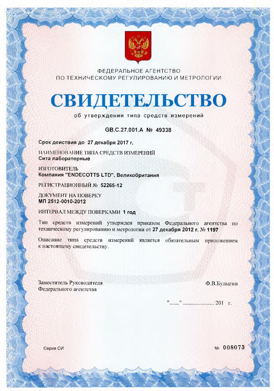 Поверка осуществляется по документу «Сита лабораторные. Методика поверки. МП 2512-0010-2012», утвержденному ГЦИ СИ ФГУП «ВНИИМ им. Д.И. Менделеева» в сентябре 2012 г. Основным средством поверки является: прибор измерительный двухкоординатный ДИП-6.