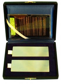 Хромоникелевые испытательные панели MAGNAFLUX представляют собой латунные пластины размером 100мм х 70мм х 2 мм с никель-хромовым покрытием заданной толщины. На никель-хромовом покрытии имеются искусственно созданные параллельные трещины. Трещины создаются при изготовлении пластин за счет приложения растягивающего усилия в направлении, перпендикулярном предполагаемому направлению трещин. Из-за того, что латунь более пластична по сравнению с никель-хромом трещины образуются только в покрытии. При изготовлении, после получения трещин пластины разрезают пополам перпендикулярно направлению трещин, т.е. получается комплект из двух практически одинаковых тест-панелей. За счет этого панели являются эффективным средством сравнения характеристик различных средств капиллярного контроля и слежения за износом пенетранта на линиях капиллярного контроля. Панели выпускаются с глубиной трещин 50, 30, 20 и 10 мкм. При этом 10 мкм панели используются для контроля высокочувствительных пенетрантов, а 50 мкм панели - для низкочувствительных пенетрантов.