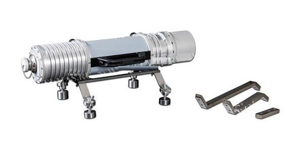 Одним из вариантов размещения рентгеновских аппаратов на объектах проведения радиационного контроля являются крепежные приспособления серии «Паук-2М», изготавливаемые согласно утвержденной нормативной документации – ТУ 4276-020-96651179-2015. В конструкцию крепежных приспособлений входит четыре ноги, магниты мощного действия и сам держатель для оборудования. Исполнение держателя зависит от модели используемого в работе рентгеновского аппарата и выполняется в виде или обжимной муфты, или плоского основания. С помощью регулировочного механизма с шаровой головкой и фиксатором барашкового винтового типа на ноги конструкции крепятся магниты, такая конструкция разрешает располагать приспособление с оборудованием на трубопроводах диаметром больше 200 мм. Также применяется и для объектов контроля с полоской поверхностью. В комплект приспособления поставляются сменные ноги различной длины, разная длина ног необходима для регулирования фокусного расстояния при проведении контроля.