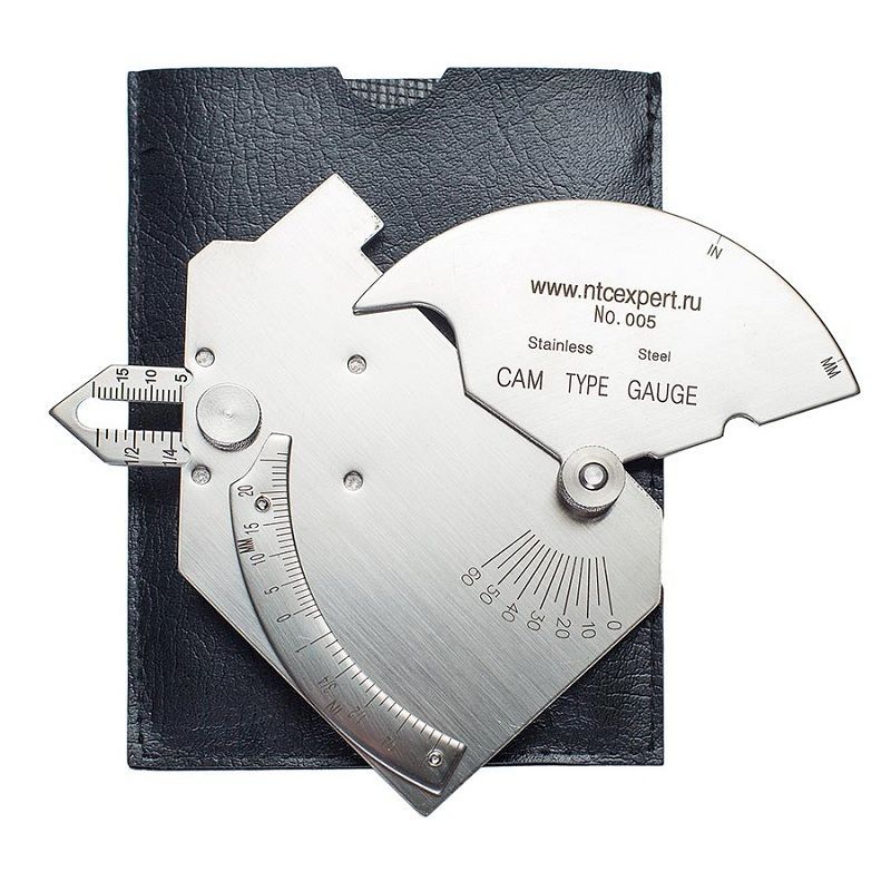 Универсальный шаблон сварщика WG-17 (Bridge Cam) изготовлен из нержавеющей стали и состоит из базовой пластины с 3-мя шкалами, ползунка с 1-й шкалой и подвижного указателя с риской.