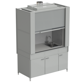 Шкаф вытяжной с коконом из стеклопластика с мойкой из НС и смесителем с ВЗБ светильником 1500х820х2240 мм, раб. поверхность - LABGRADE