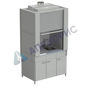 Шкаф вытяжной с коконом из стеклопластика с мойкой из НС и смесителем с ВЗБ светильником 1200х820х2240 мм, раб. поверхность - МОНОЛИТНЫЙ КЕРАМОГРАНИТ