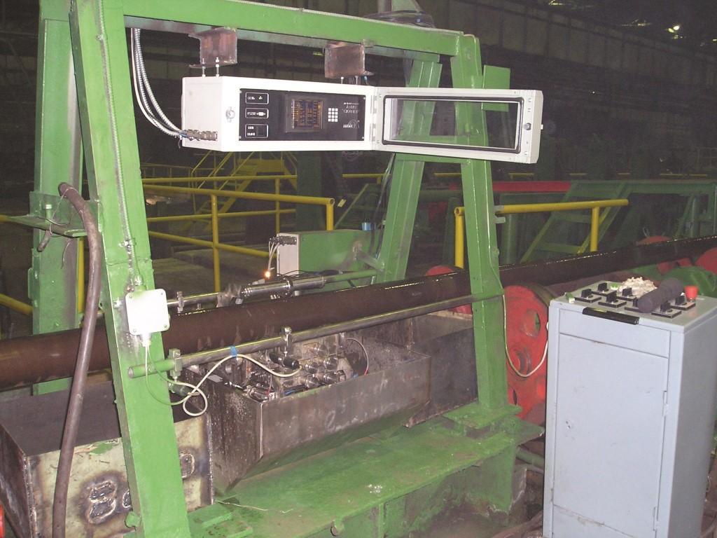 Автоматизированная ультразвуковая измерительная установка серии «СКАНЕР» (модель № 5.03) с автоматической фиксацией и расшифровкой результатов контроля предназначена для проведения неразрушающего контроля стальных бесшовных труб диаметром 50 … 426 мм и толщиной стенки 3.0 … 40.0 мм в технологическом потоке производства труб. Установка АУЗК позволяет проводить сплошной контроль тела трубы и определять участки труб с толщиной стенки, выходящей за пределы допусков и обнаруживать расслоения, а также выявлять продольно и поперечно ориентированные дефекты в металле. Способ ввода ультразвуковых колебаний – иммерсионный, контактная жидкость – питьевая вода. Длина неконтролируемых концов не более 200 мм. Установка обеспечивает выполнение требований ASTM E 213, ASTM A 106, SEP 1915, ГОСТ 17410, ISO 10124, ISO 3183-3, ISO 10543, ГОСТ 12503 по ультразвуковому контролю труб и муфтовой заготовки, изготавливаемых в соответствии с API 5L, API 5D, API 5 CT, ГОСТ 632, ГОСТ 633, ГОСТ 550, ГОСТ 8731. Работа установки производится в цеховых условиях.